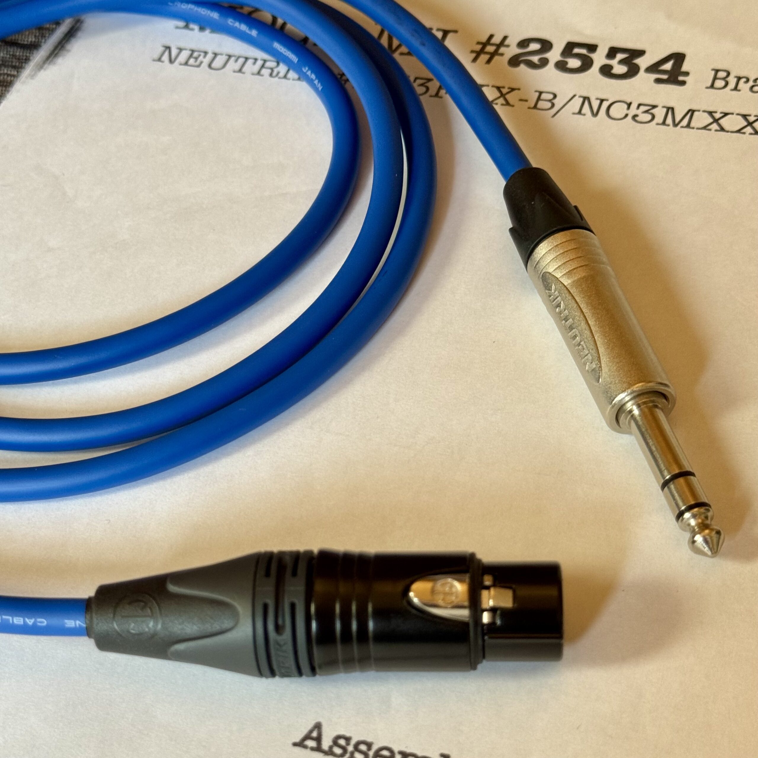 Mogami 2534 Blue | Star Quad Balance Cable – Neutrik XLR or TRS options | Assembled in Tokyo