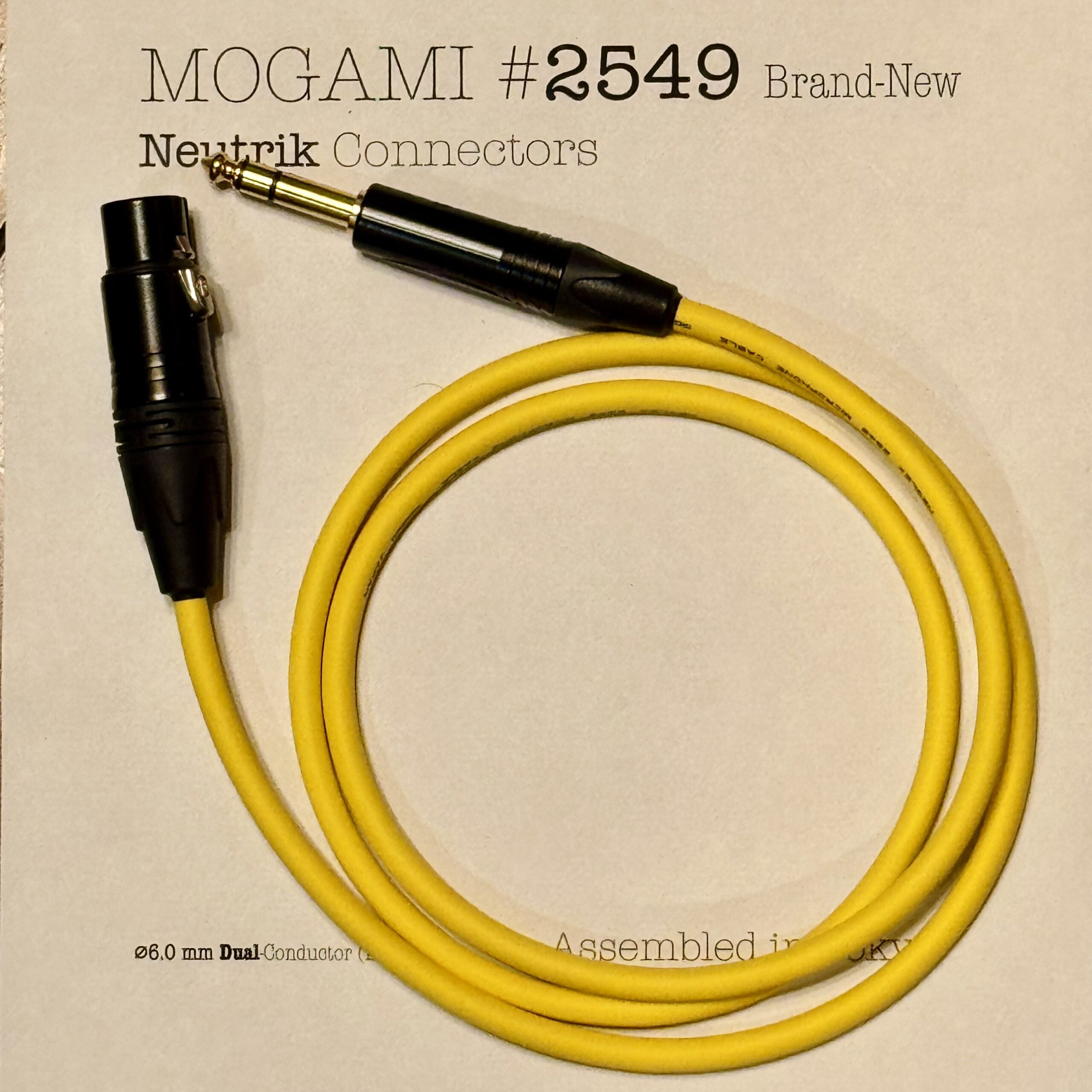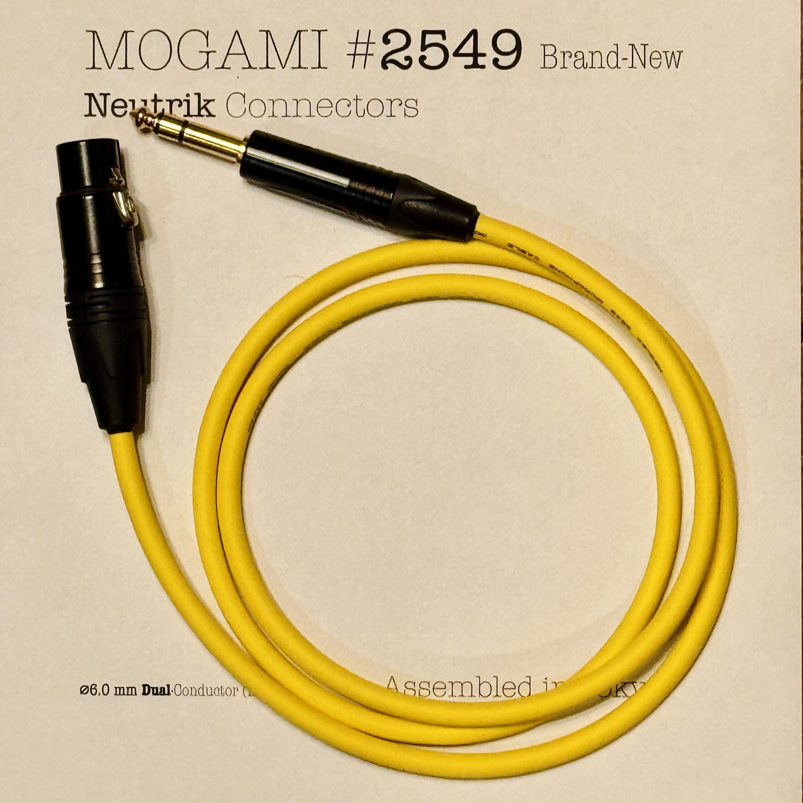 Mogami 2549 Yellow | Dual Conductor Cable – Neutrik XLR or TRS options | Assembled in Tokyo