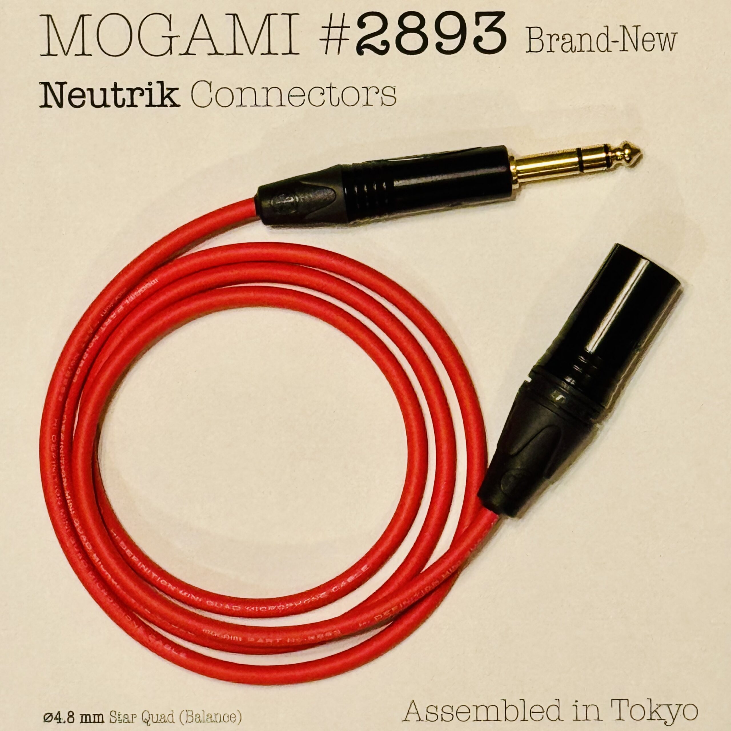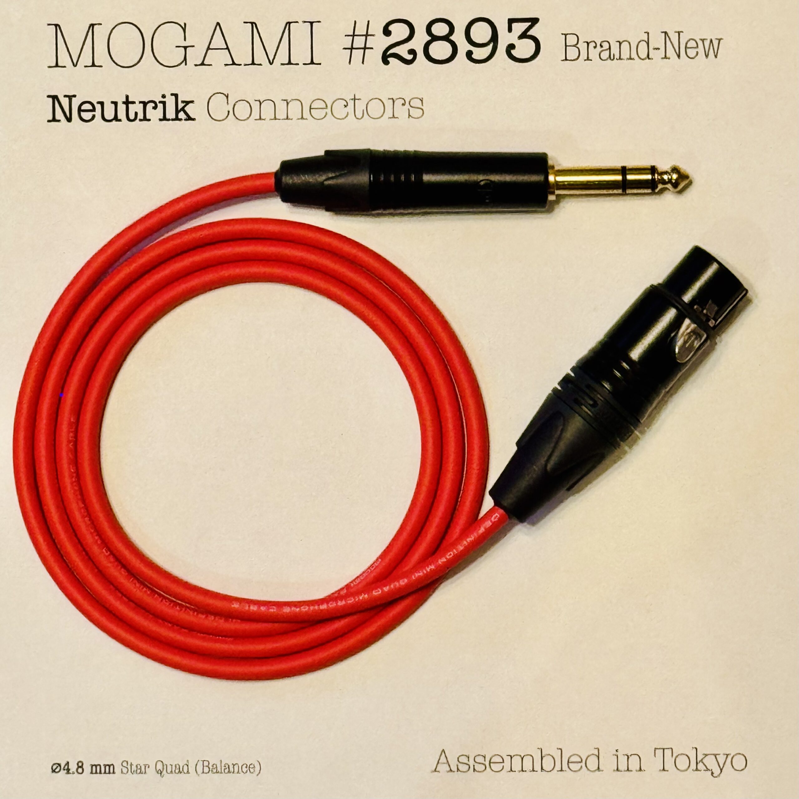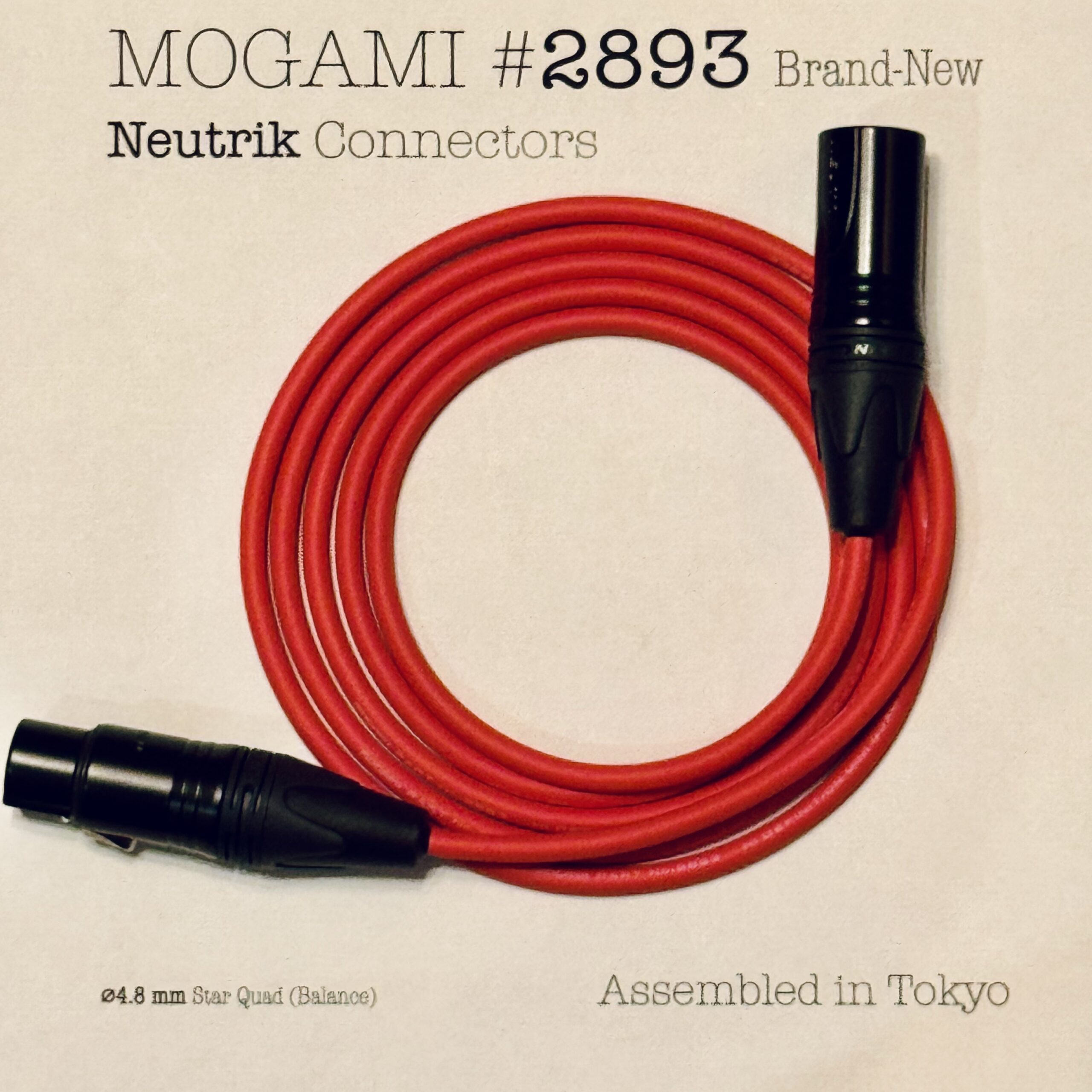 Mogami 2893 Red | Flexible Star Quad Cable – Neutrik XLR or TRS – Assembled in Tokyo