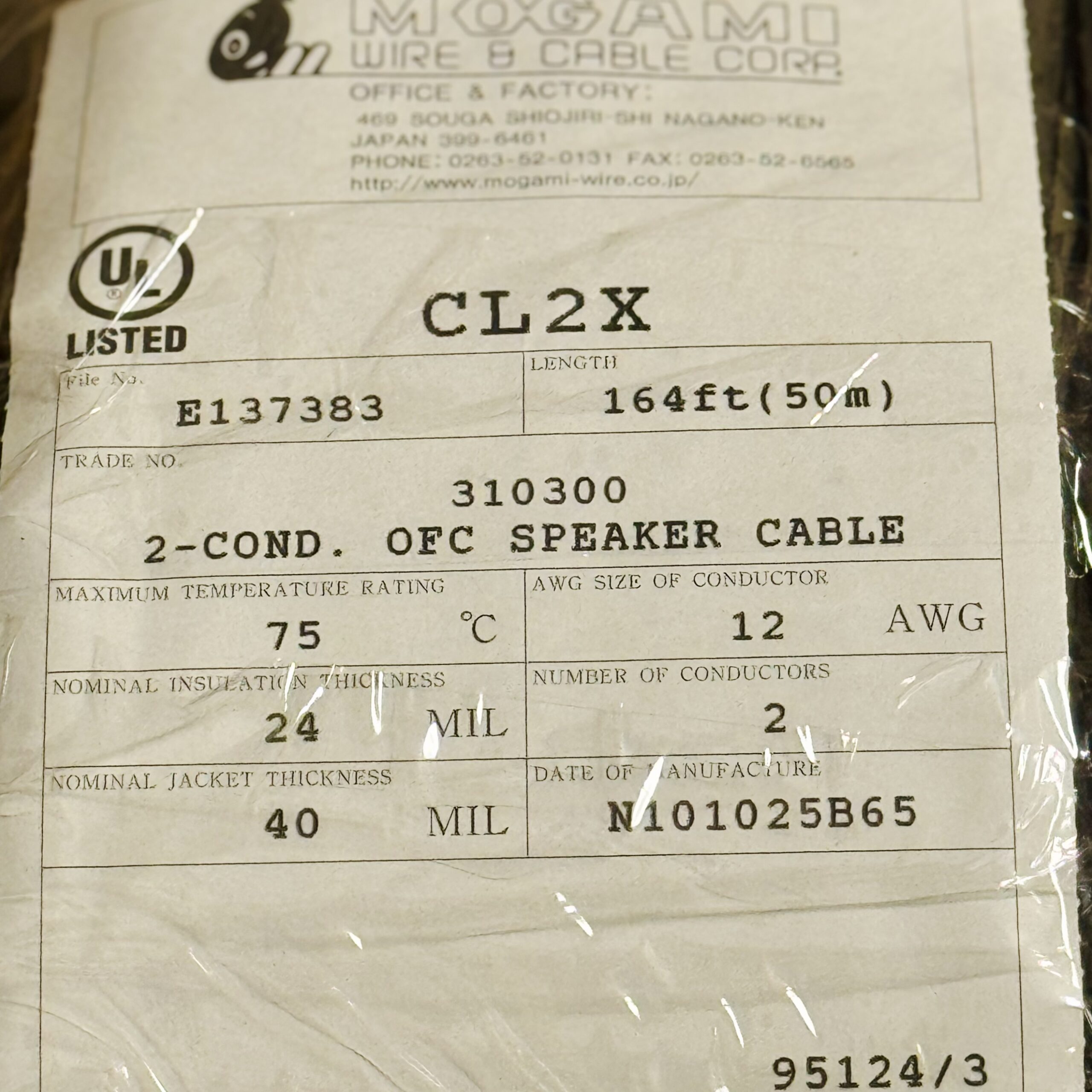 Professional studio cable, custom-cut from new MoProfessional studio cable, custom-cut from new Mogami spool in Tokyo.