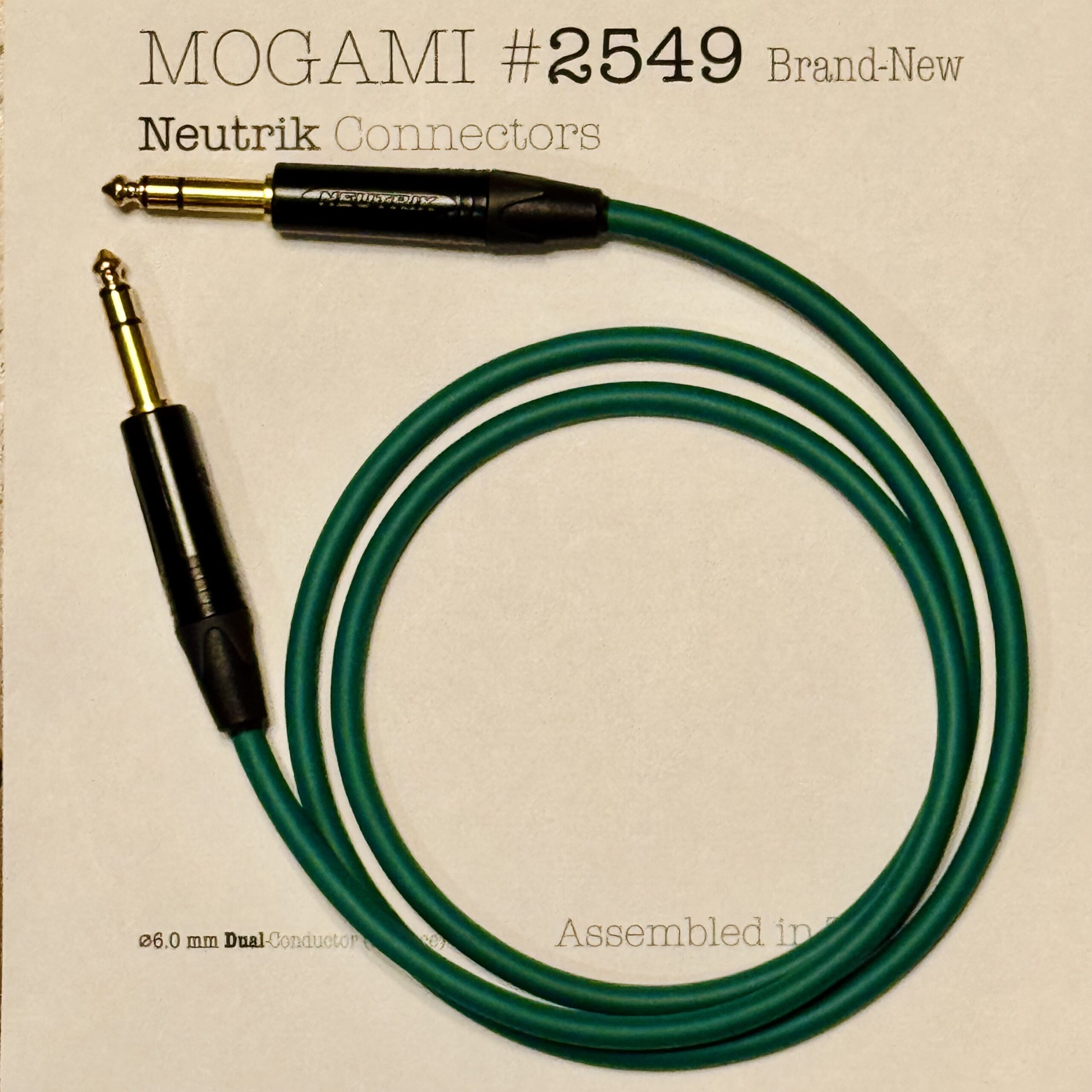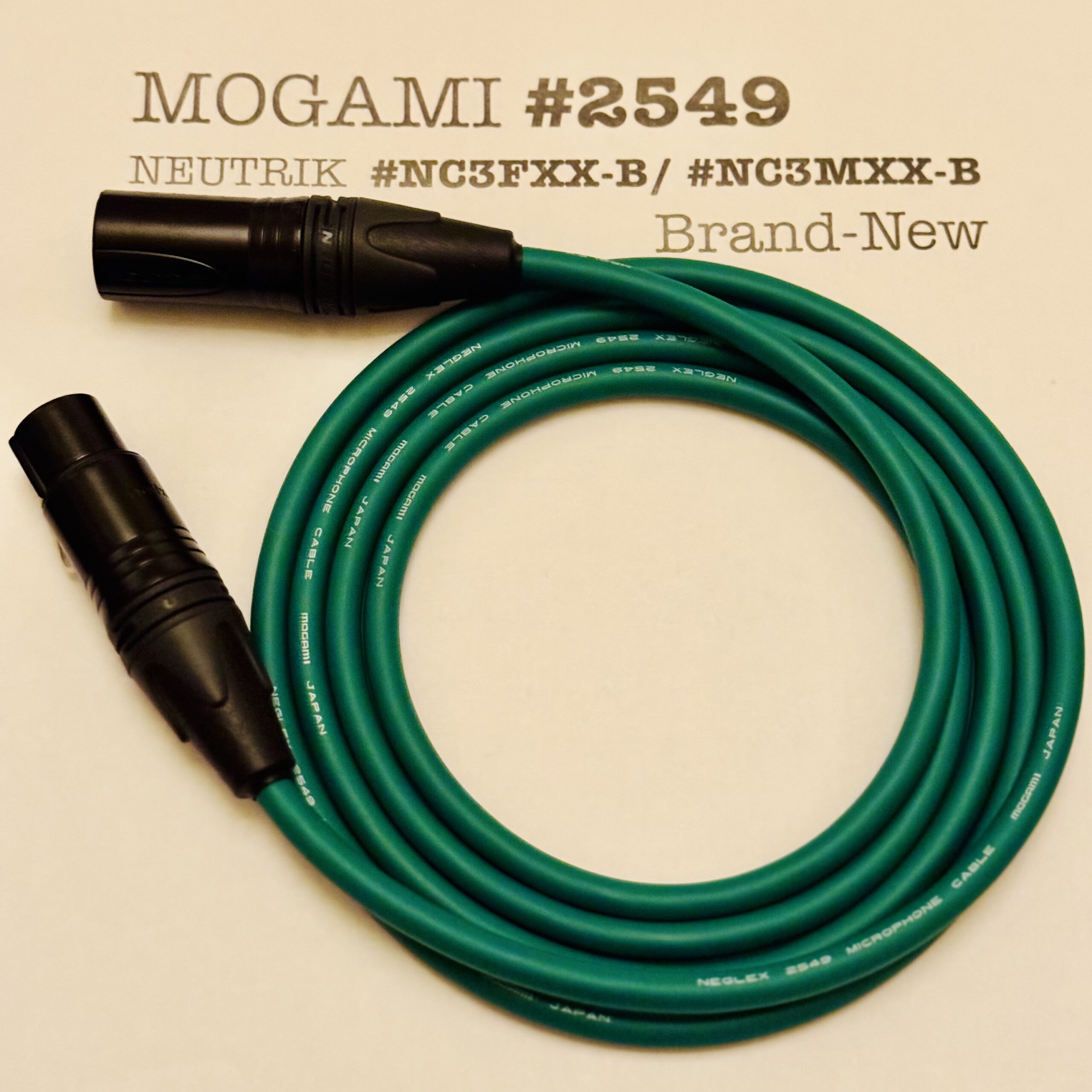 Mogami 2549 Green | Dual Conductor Cable – Neutrik XLR or TRS options | Assembled in Tokyo